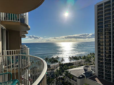 We stayed at the Twin Fin, where we had stayed before and enjoyed its location on the beachfront, and between the beachfront shopping area and the zoo at Waikiki. The views never fail to relax me.